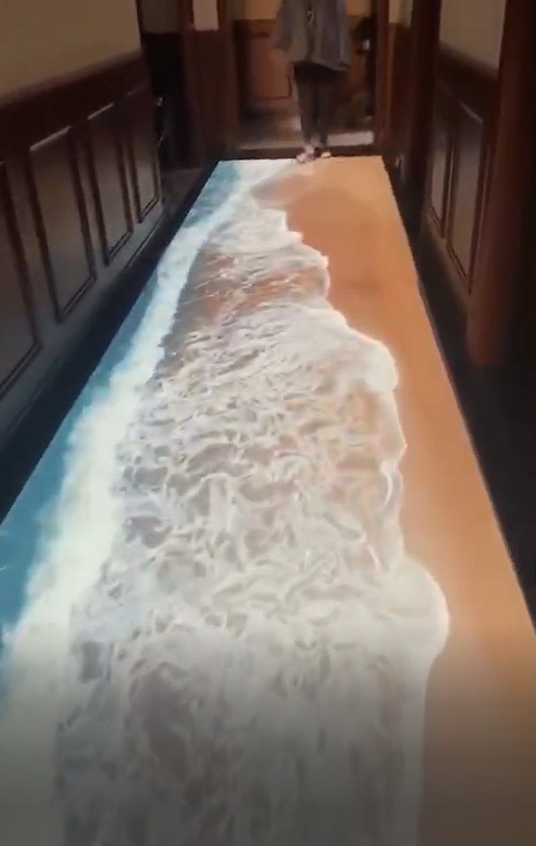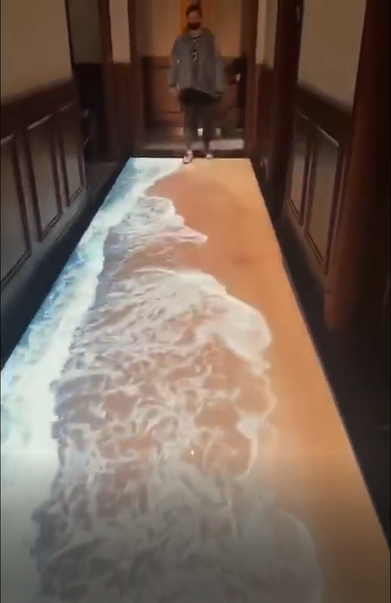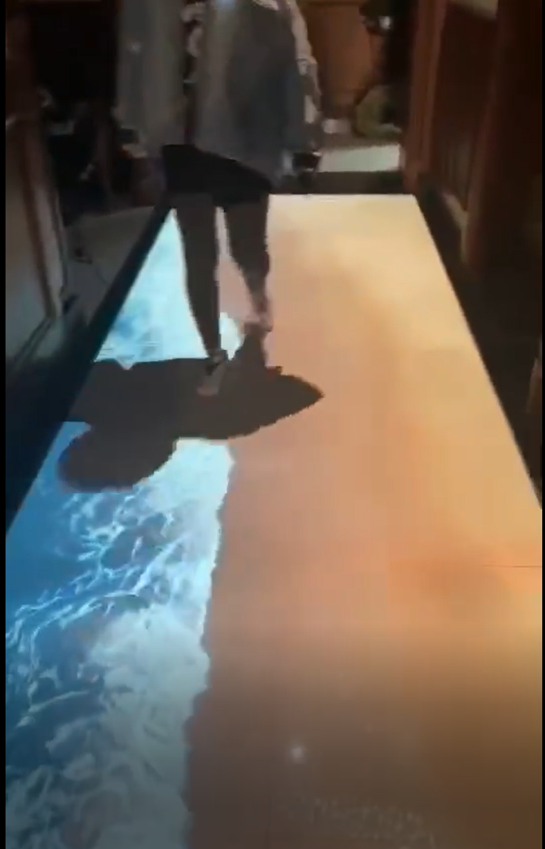 观众通过身体动作来与地面的图像进行互动,各种特效影像在脚下绽放,带来一种全新的奇特的体验。