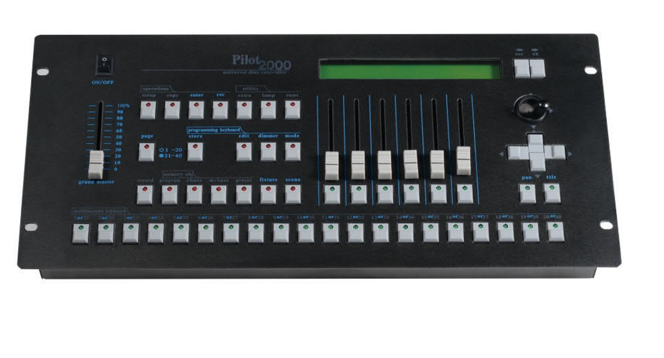 You can control up to 40 fixtures, the largest number of channels each lamp 36, the liquid crystal display operating conditions